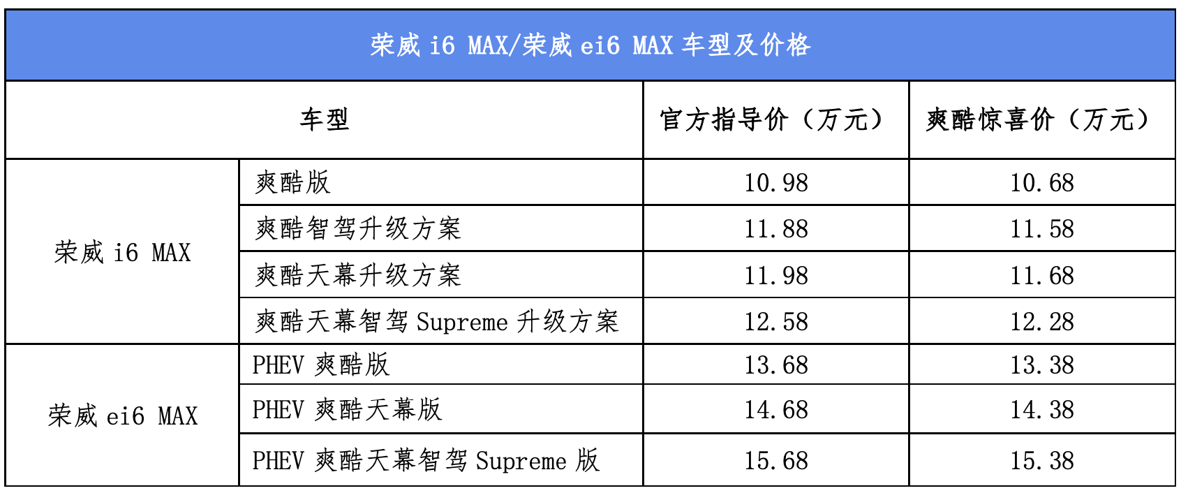 9月16日晚间,荣威i6 MAX及插电混动荣威ei6 MAX同步上市,共2种动力7款车型,官方指导价10.98万-15.68万元,补贴后爽酷惊喜价10.68万-15.38万元。其中荣威i6 MAX推出4款车型,整体售价10.98万-12.58万,PHEV版本有3款车型,整体售价13.68万-15.68万。相信有不少消费者对这款车抱有极高关注,本文角师傅就带来这款车的选买手册,7款车型,哪款更值得入手?